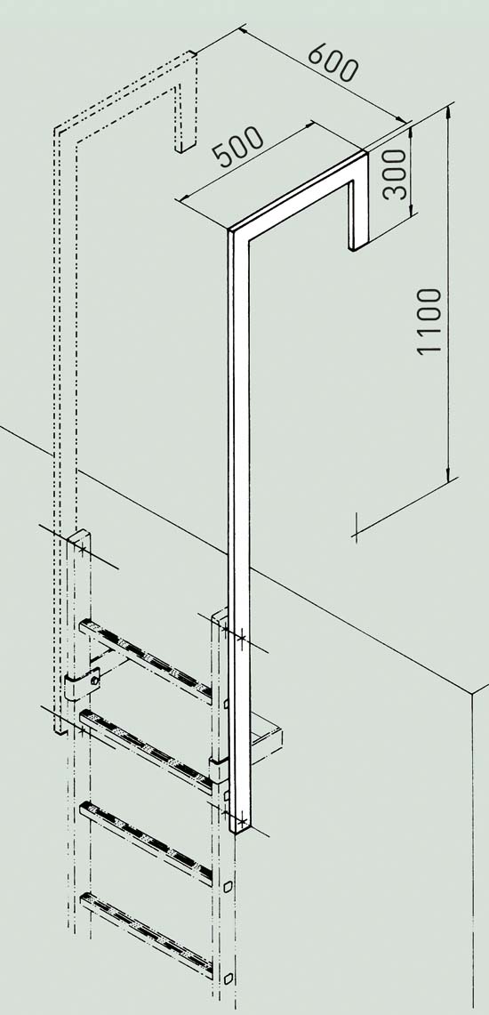 Als seitliche Ein- bzw. Ausstiege aus der Leiter. Links sowie rechts von der Steigleiter einsetzbar.