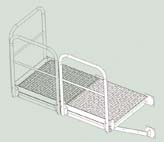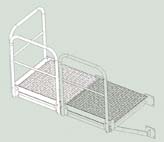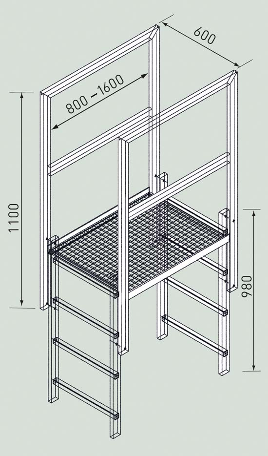 Gitterrostbelag und 2 Anbaukonsolen.Geländer an einer Längs- und Stirnseite.Flächenlast 3,5 kN/m².Einzellast 1,5 kN.
