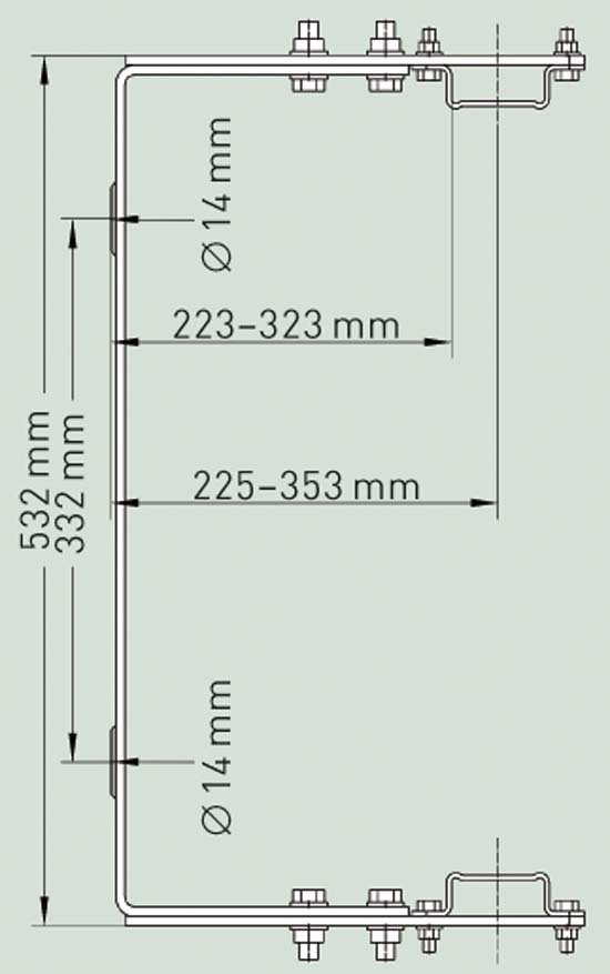 Wandhalter als U-Bügel, verstellbar, 200-250 mm